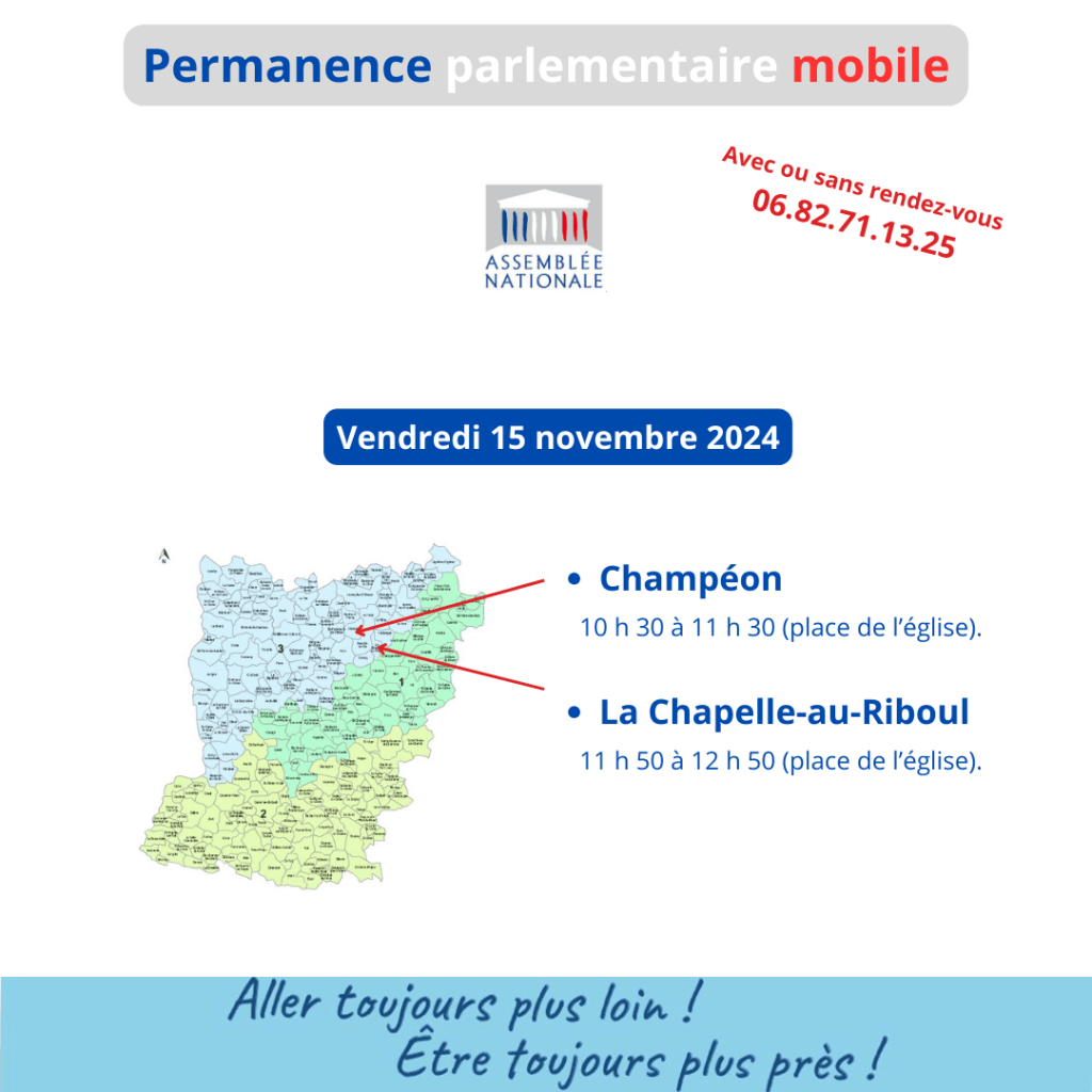 Demain, vendredi, retrouvons-nous à Champéon et à La Chapelle-au-Riboul pour une nouvelle journée à votre rencontre à bord de ma permanence parlementaire mobile.