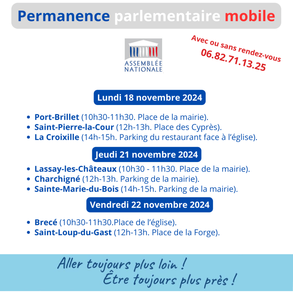 Nouvelle semaine à votre rencontre dans les communes de la circonscription. Je me réjouis de vous retrouver à bord de ma permanence parlementaire mobile dans les huit communes au programme de cette semaine.