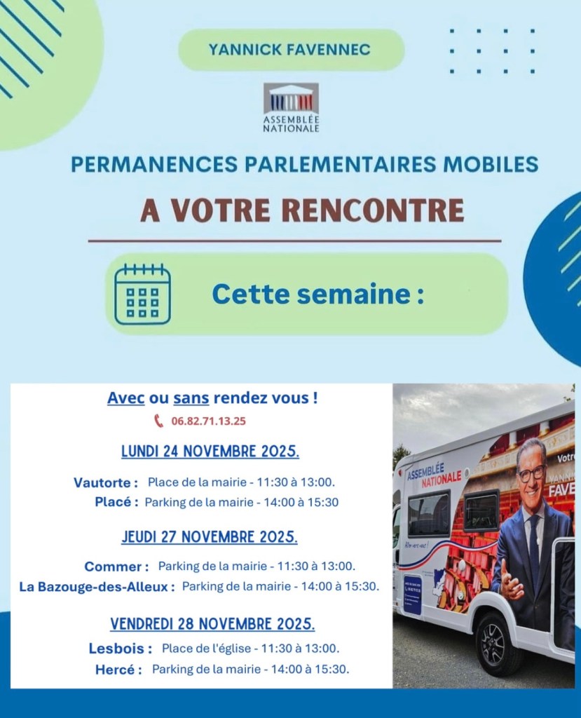 La semaine prochaine, j’irai à votre rencontre avec ma permanence parlementaire mobile dans  6 nouvelles communes : Vautorte, Placé, Commer, La Bazouge-des-Alleux, Lesbois, Hercé…