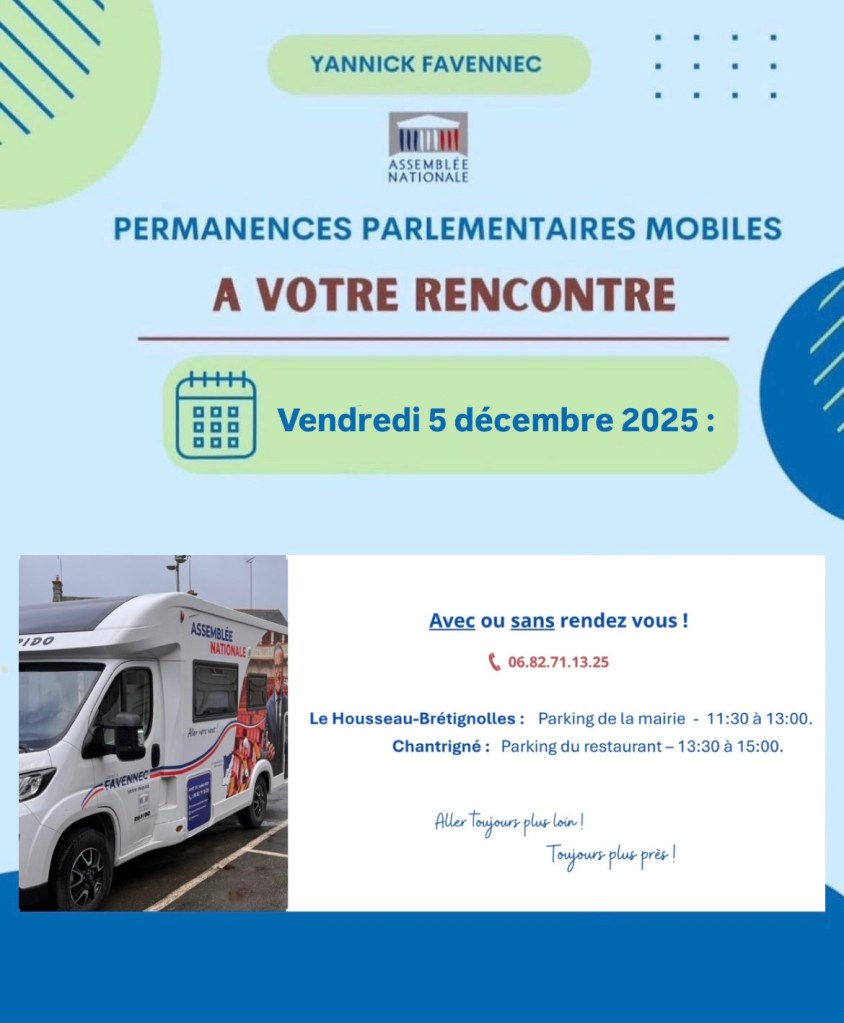 Cette semaine, je continue de vous accueillir, avec ou sans rendez-vous, dans les communes du Housseau-Brétignolles et de Chantrigné.