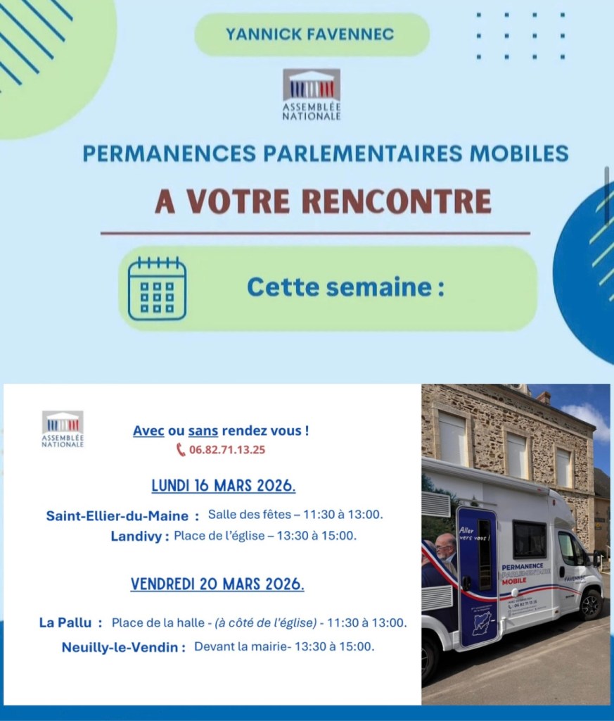 La semaine prochaine, je sillonnerai à nouveau les routes de notre circonscription à bord de mon bureau mobile pour vous accueillir dans quatre nouvelles communes. Je serai heureux de vous accueillir pour échanger et partager un moment avec vous.